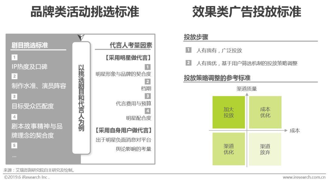 金融科技企业品牌类活动和效果类广告由于宣传目的的不同通常遵循不同的挑选标准。品牌类活动常以树立平台的品牌形象为主要目的,传播的广泛性、恰当性、节奏性尤为重要,因而活动热度、活动受众与平台目标用户的匹配程度、活动价值观与品牌主张的相符性等因素多是品牌类活动挑选的重要依据。相比之下,效果类广告的目的更为直接,效果类广告以短平快的效率和可衡量的结果为导向,因而需要综合渠道质量、渠道费用以及投放时间等因素不断地对投放策略进行有效调整,以提高获客精准度。