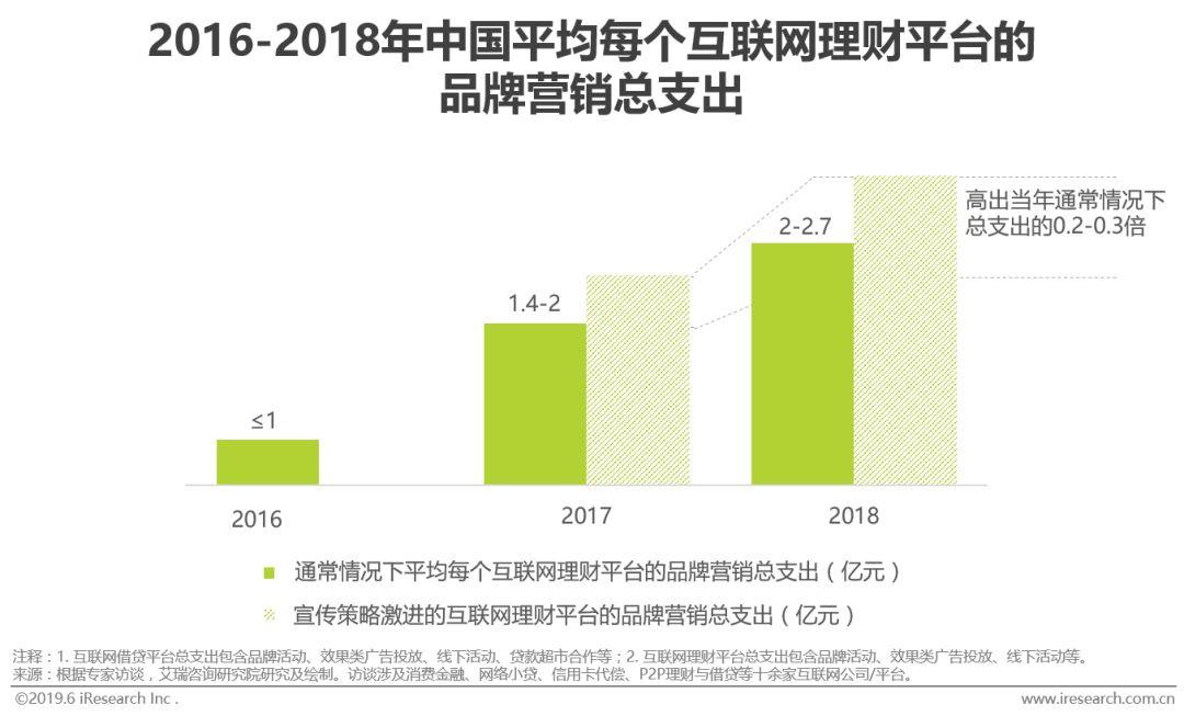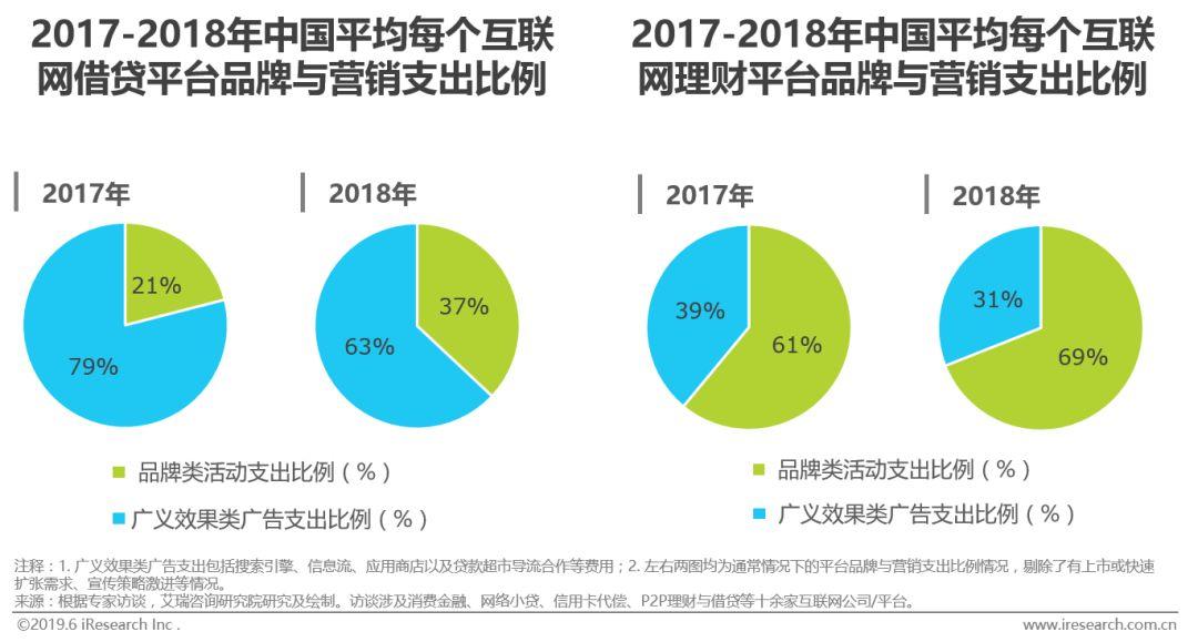从支出流向来看,广义效果类广告(见注释)是互联网借贷平台的重头支出,近两年占品牌营销总支出的比例达6-7成;品牌类活动是互联网理财平台的重头支出,近两年占品牌营销总支出的比例同样达6成。