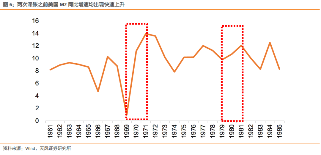 70-80年代发达国家普遍的通胀来源于宽松货币政策下流动性过剩以及两次石油危机的冲击。一方面,战后欧美国家为了恢复经济,普遍采取扩张性的财政和货币政策来刺激经济,这导致到了70年代之时,欧美发达国家普遍面临供给过剩和流动性过剩的问题。以美国为例,在两次滞胀时期之前,均出现了货币供给快速扩大的情况。