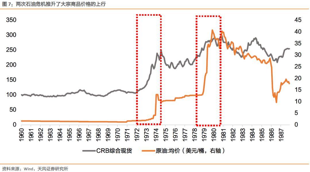 另一方面,70年代两次石油危机导致油价飙升,1973年当年甚至涨幅达到70%以上,而欧美发达国家往往是石油需求大国,原油价格的上涨导致大宗商品价格普遍上行,进而造成了欧美各国的输入型通胀。