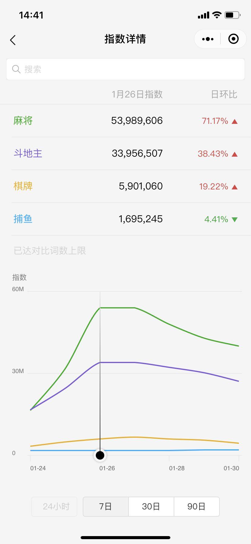 小程序端方面,棋牌游戏的微信指数整体也在大年初二和大年初三达到巅峰。
