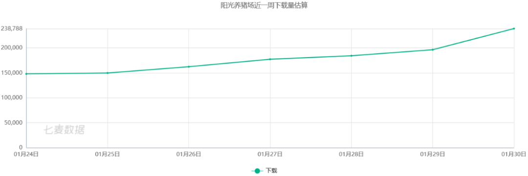 作为首款业内皆知的“红包提现”游戏,《阳光养猪场》在今年春节档拿下了iOS游戏免费榜TOP2,日均下载量保持在15万以上。