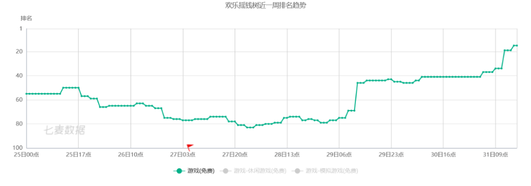 与此同时,也有更多类似产品在春节档发力。比如《欢乐摇钱树》在春节期间的iOS游戏免费榜排名基本保持在TOP80以内,后期持续发力,到1月31号一度冲上免费榜TOP20内。