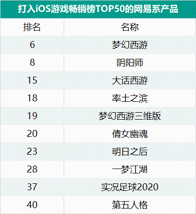 整体而言,网易有10款产品打入了iOS游戏畅销榜TOP50,其中《梦幻西游三维版》排名第19。