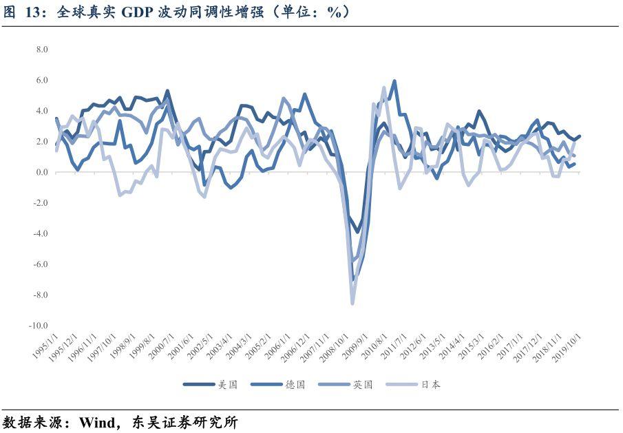 综合来看,伴随交通、通信成本的下降,迅速的效率提升支撑了战后长期的全球同步增长,但这也让全球经济的不确定性系统性上行