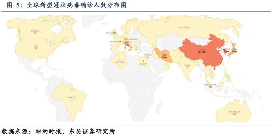 从当前形势来看,我们在二月初的判断存在足够的前瞻性。至截稿时,全球被感人人数已经达到82,400人,2,804因此罹难,其中60人来自中国以外国家。其中,韩国确诊人数达到1,766人,日本894人,意大利453人,伊朗245人,疫情在全球更广阔范围内传播的可能性正在显著上升。