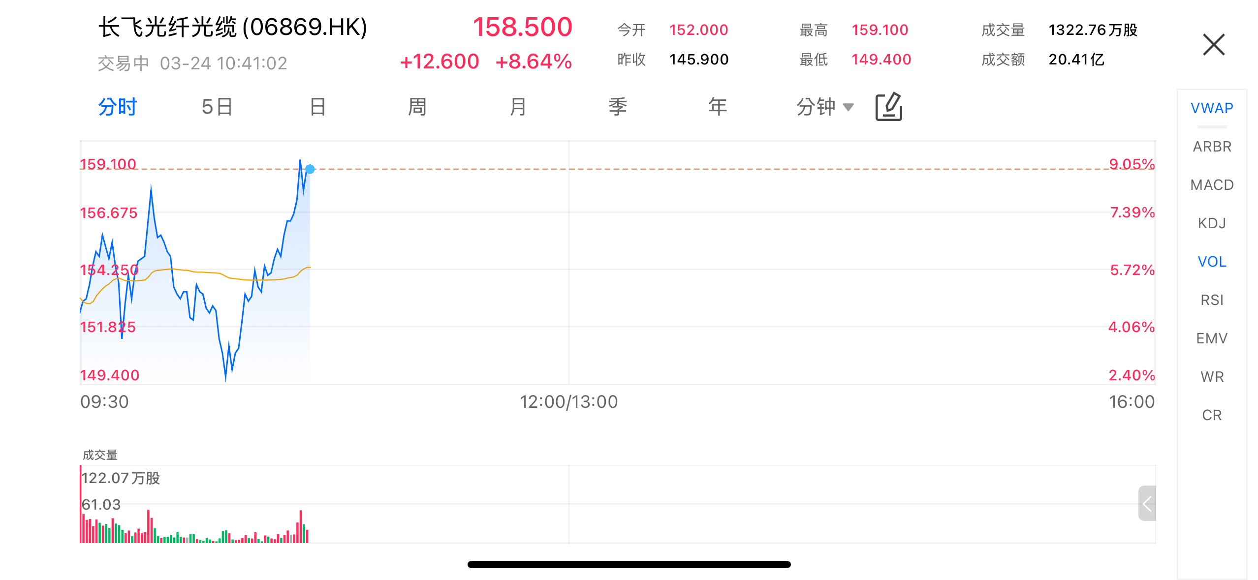 On the morning of March 24, Yangtze Optical Fibre and Cable (06869.HK) surged more than 8% intraday, closing up 8.64% at HKD 158.5, with a turnover of HKD 20.41 billion. The stock became one of the focal points in the Hong Kong telecom sector. Although the gains narrowed later in the session, trading volume expanded significantly, reflecting heightened market attention. Market consensus attributes this price movement primarily to the unexpected surge in optical fiber and cable prices.