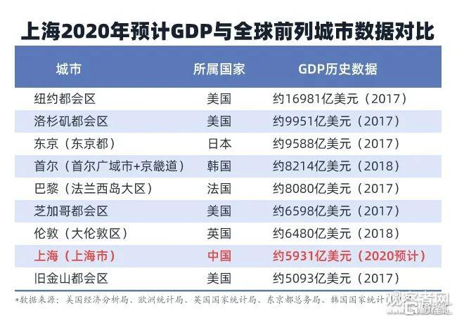 上海十四五规划建议透露,预计上海2020年生产总值(GDP)达3.9万亿元,人均生产总值超过2.3万美元,经济总量迈入全球城市前列。