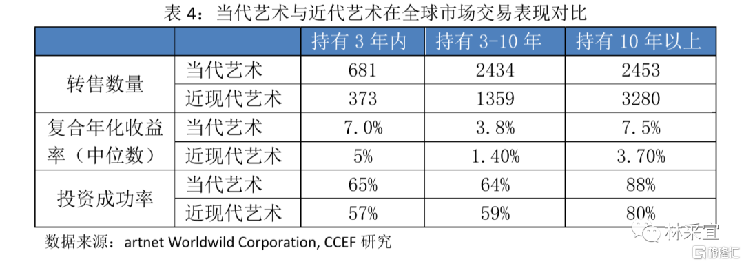 当代艺术在中国和海外市场的整体风险收益率和投资成功率均高于古典艺术。