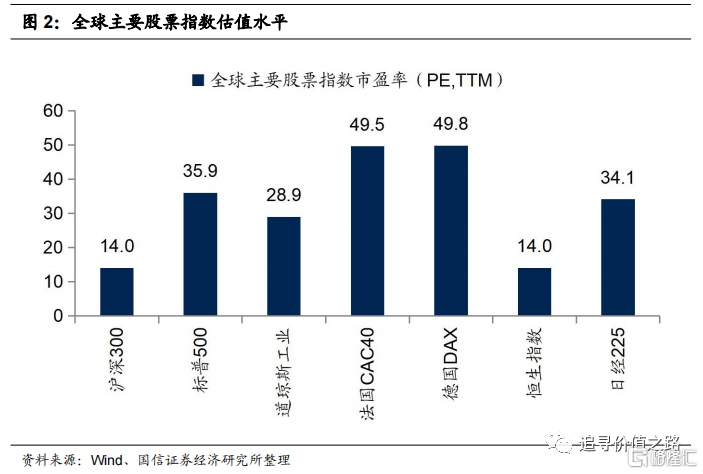 A股估值水平長期以來偏低,滬深300指數估值水平處於全球窪地,其原因在於A股中金融、地產等行業佔比較高,拖累了上市公司整體業績。截至目前,A股市場一季報顯示全部A股可比口徑下實現淨利潤同比增長54.3%,而剔除金融兩油企業後A股可比口徑下合計淨利潤增長高達116.4%。截至4月30日,A股市盈率中位數為31.3,剔除金融業後A股市盈率中位數上升至31.8,而創業板市盈率中位數高達42.1,由此可見,科技創新對於股票市場的估值水平具有重要的支撐作用。