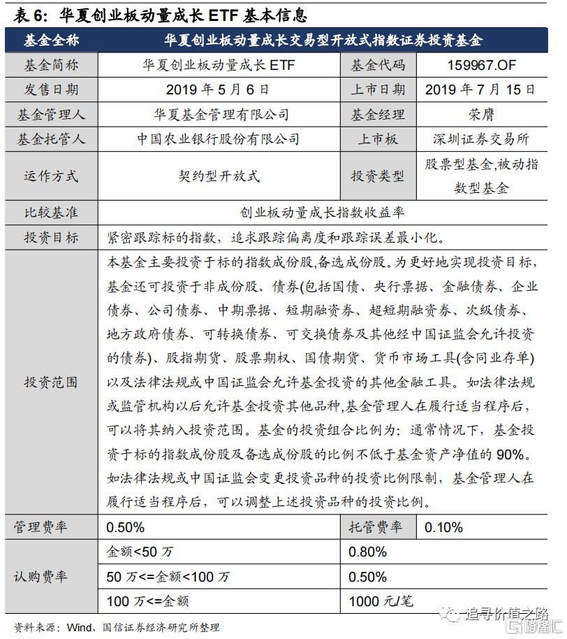 華夏創業板動量成長ETF(159967.OF)是緊密跟蹤創業板動量成長指數收益率的基金產品,本基金力爭日均跟蹤偏離度的絕對值不超過0.2%,年跟蹤誤差不超過2%,為投資者提供一個管理透明且成本較低的標的指數投資工具。費率端來看,本基金的管理費率為0.50%,託管費率為0.10%。