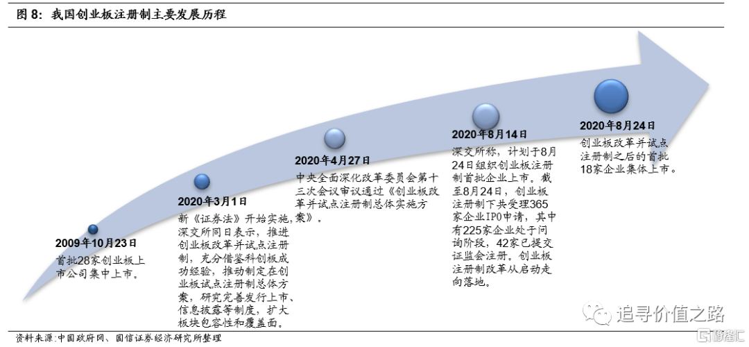 創業板註冊制正式實施推動傳統產業創新升級。為了深化資本市場改革、完善資本市場基礎制度、提升資本市場功能,2020年4月27日中央全面深化改革委員會第十三次會議審議通過了《創業板改革並試點註冊制總體實施方案》。改革實施後創業板和科創板的板塊定位得到進一步明確區分,創業板的定位明確為“主要服務成長型創新創業企業,支持傳統產業與新技術、新產業、新業態、新模式深度融合”,進一步強調推動傳統產業的創新升級。此外,通過設置行業負面清單,創業板所服務的行業更為廣泛,且進一步排除了房地產等傳統行業在創業板上市的可能。