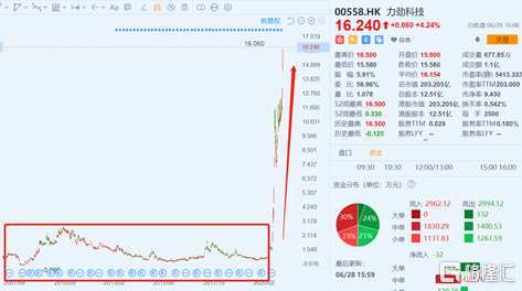 文燦的股價也許是隨着大盤整體震盪的,但力勁科技的身價卻早已經翻了十幾倍,力勁科技半年以來股價狂飆,漲幅高達1400%,報16.24港元/股,其滾動市盈率更是超過了200倍。