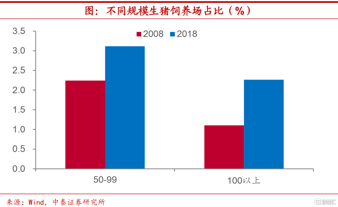 豬無近憂,但有遠慮。雖然年內豬肉價格的變化或許並不會對CPI增速構成很大的上行壓力。但一方面,根據豬週期變化規律以及能繁母豬等領先指標反映的情況來看,明年上半年豬價中樞或有抬升,進而將帶動CPI增速有所走高;而另一方面,當前生豬規模化養殖程度提高,較大規模生豬飼養場佔比明顯提升,但從本輪豬週期實際情況來看,這或許加大了豬價的週期波動幅度,因而對於豬價上行帶來的通脹風險仍需警惕。