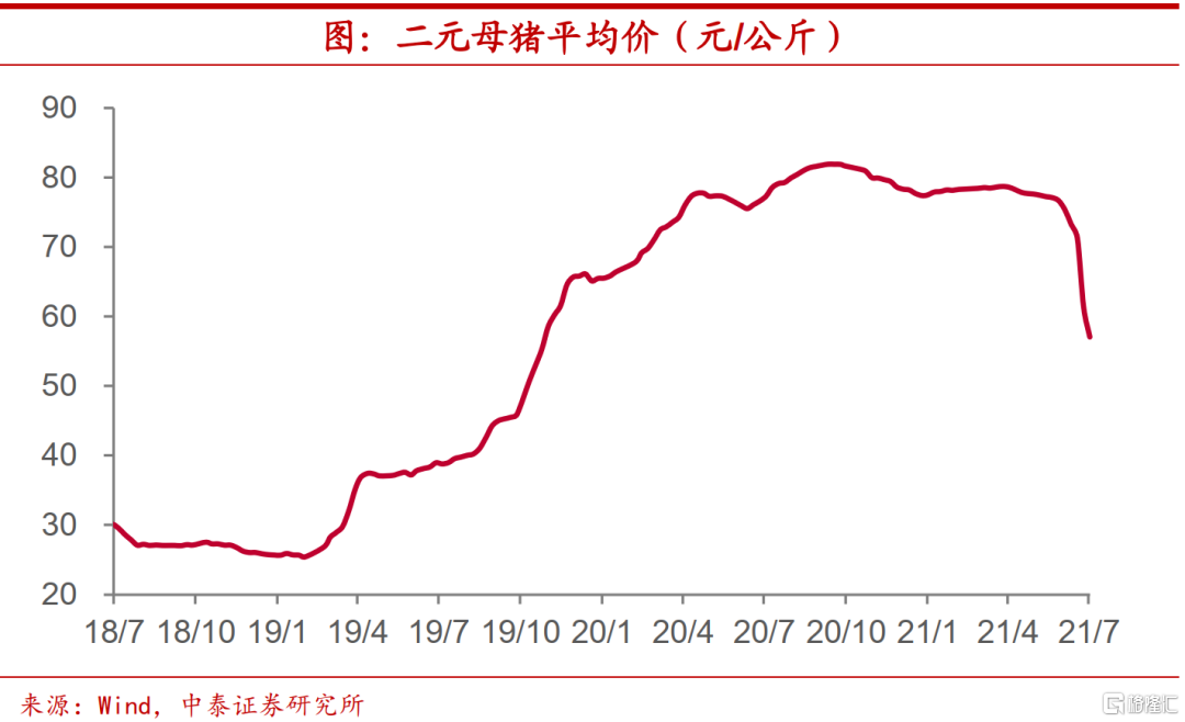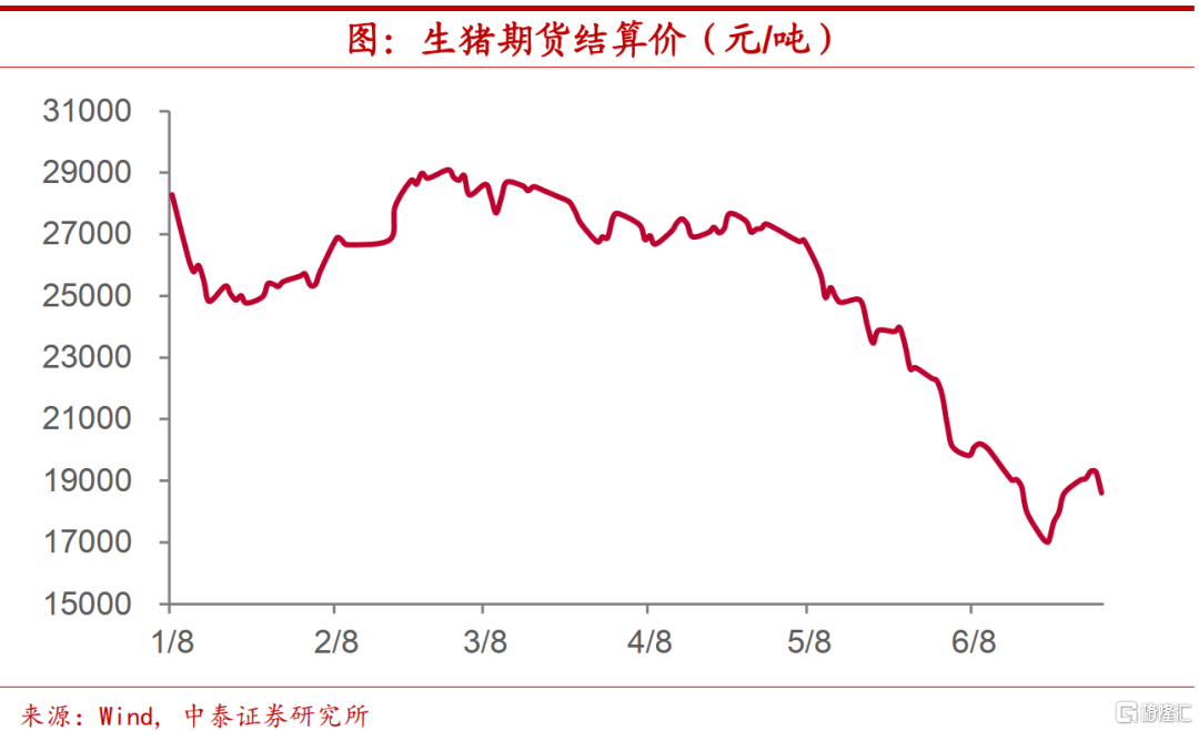 補欄意願也有下降。其次,市場對於母豬的補欄意願或也有所下降。一方面,二元母豬均價從6月初超過75/公斤的高位降至7月初的僅57/公斤,價格下滑了接近25%;另一方面,頭部種豬企業的後備母豬銷量增速近兩個月也持續回落。這均意味着未來生豬供給將趨於走弱。