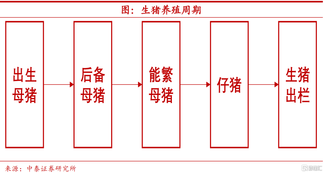供給端的調整需要考慮到育種時間。一般而言,出生母豬經過育肥後成為後備母豬,後備母豬繼續育肥成為能繁母豬,能繁母豬經歷妊娠後生出仔豬,仔豬再經歷育肥成為生豬出欄,這一輪完整的育種過程大約需要一年半左右的時間。而如果不進行種豬育種,外購雜交母豬直接作為後備,這輪歷程可被縮短四到五個月的時間。育種時長決定了一輪完整的豬週期大約需要三至四年左右的時間。