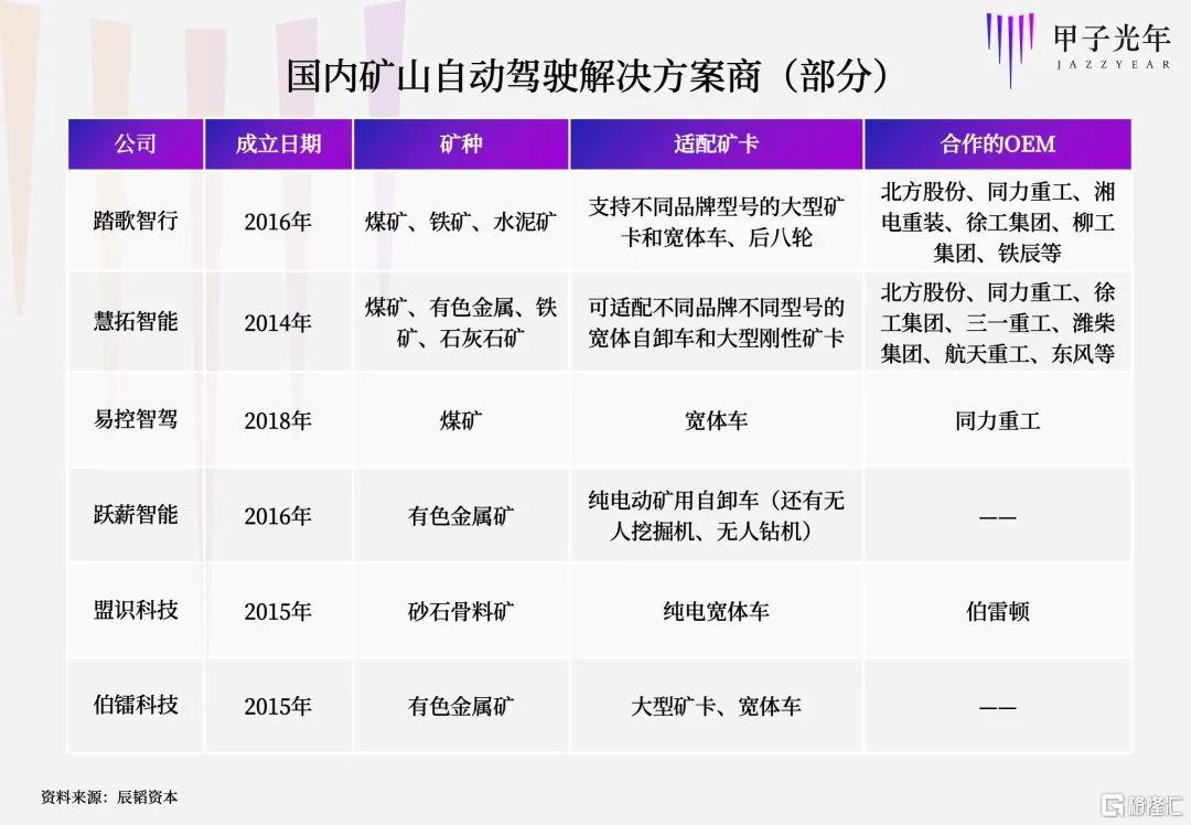 辰韜資本曾推出過港口、礦山等自動駕駛細分領域報吿,列出了各領域的代表性公司。