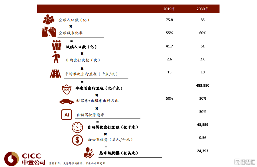 而根據中金公司的測算,2030年全球Robotaxi的市場空間將超過2萬億美元。
