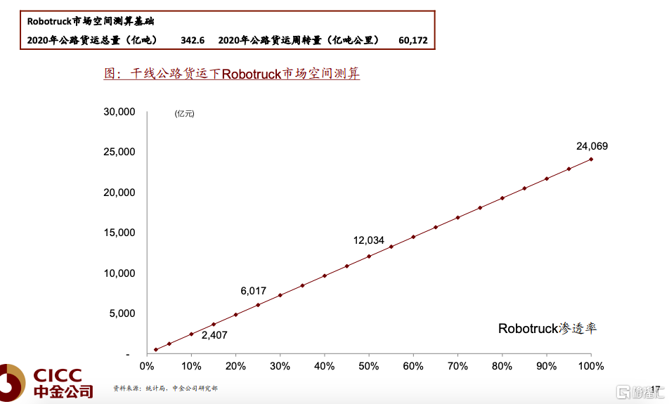 (1)三個萬億市場:Robotaxi(無人出租)、Robotruck(無人卡車)、智能駕駛Tier 1(一級供應商)