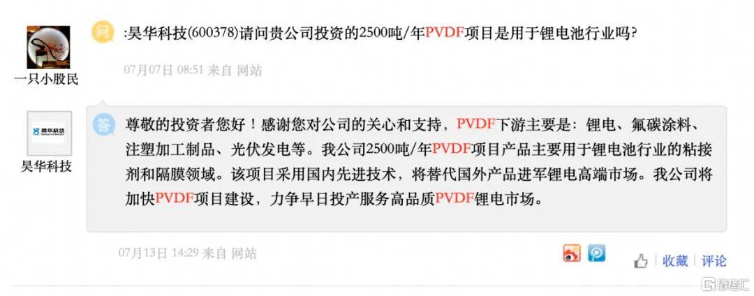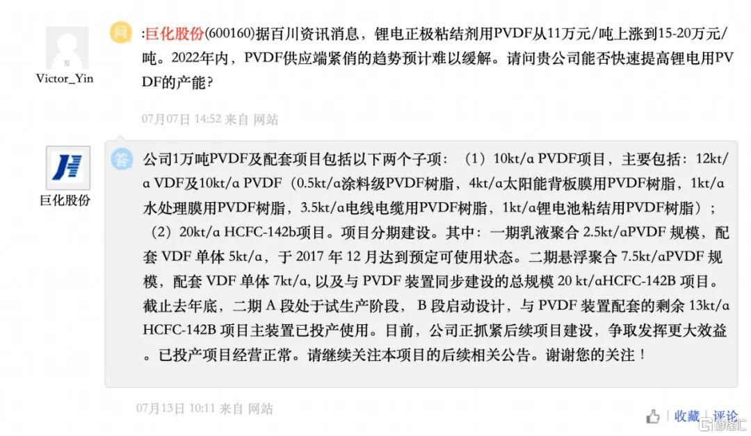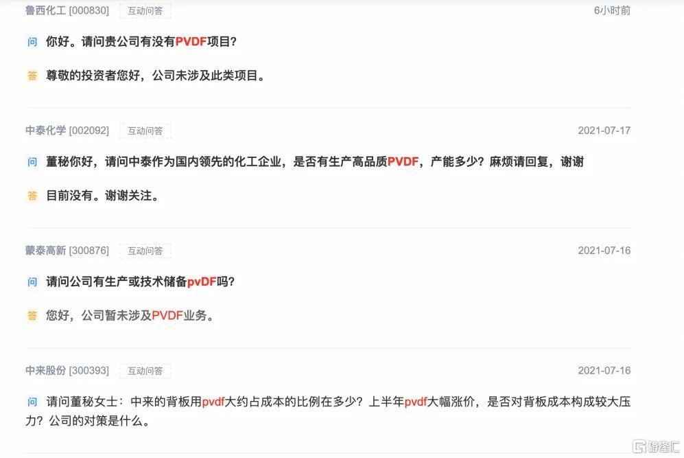 在投資者互動平台,“PVDF”成為熱門提問詞彙。來源:互動易