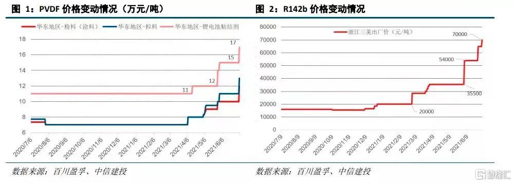 據百川盈孚,截至目前,華東地區-粒料PVDF已漲至16萬元/噸,較今年4月份上漲了近130%,其中電池級PVDF價格已達18萬元/噸,3個月內漲幅超過60%。