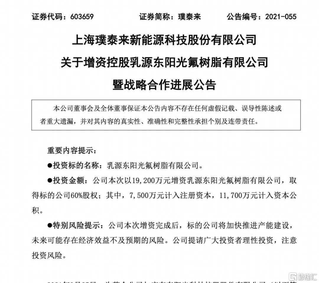 璞泰來:增資氟樹脂公司 完善產業閉環