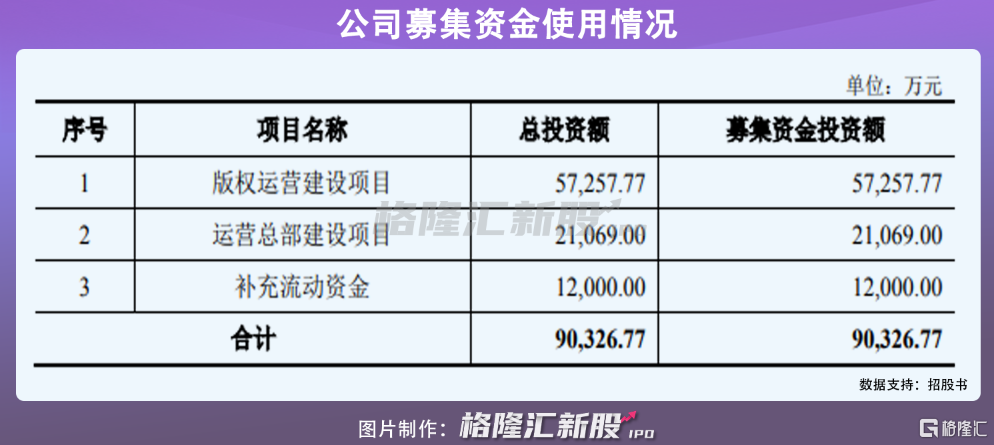 在後期,版權的運營管理仍是磨鐵文化發展的重中之重。本次IPO計劃募資9.03億元,其中的5.73億元將用於版權運營建設項目。