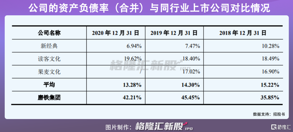 而如果只是待在自己設下的舒適圈也沒有太大的成長性和挑戰性,紅利空間終究還是有遭遇瓶頸的一天。磨鐵集團需要通過深耕IP產業鏈擁有更多的“造血”能力,目前磨鐵集團的資產負債率分別爲 35.85%、45.45%、42.21%,遠高於同行可比公司的平均值。