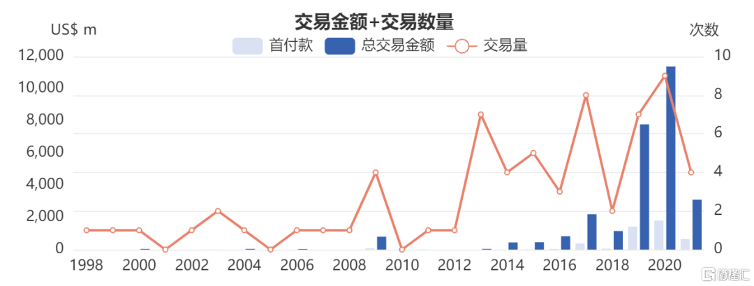 一直到2017年,Mylotarg重新上市,加上FDA批准首個CD22 ADC新藥上市,讓ADC賽道再次回暖。2019年,FDA緊跟着又批准了3款ADC新藥,除了大名鼎鼎的DS8201之外,另外兩個都是靶向CD79b、Nectin-4的新靶點ADC,徹底激發了行業對ADC藥物的投資研發熱情,一系列數十億美元、上百億美元的交易頻繁發生,小規模的ADC項目交易更是數不勝數。