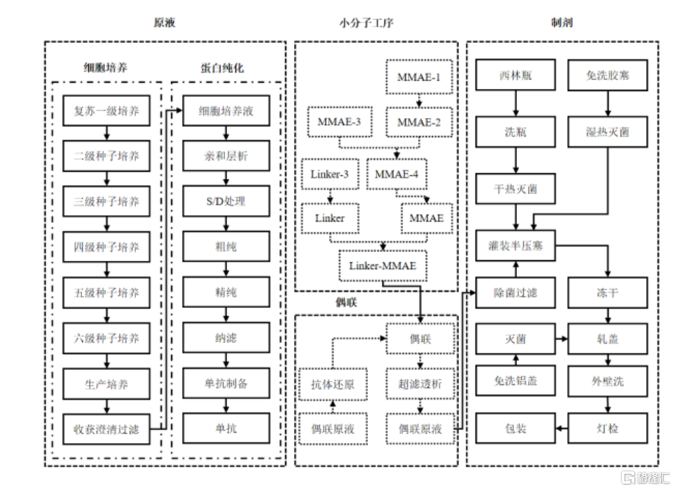 ADC藥物的生產必須具備整合抗體、小分子毒素、生物偶聯三方面能力,需要多領域專家開展合作,進行化學合成,抗體生產與偶聯生產的緊密聯動。