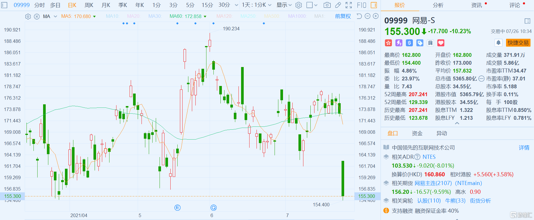 格隆匯7月26日丨網易(9999.HK)低開低走,現大跌超10%,報155.3港元,總市值5366億港元。針對市場監管總局責令騰訊解除網絡音樂獨家版權,網易雲發公告稱堅決支持國家市場監督管理總局處罰決定。網易雲音樂認爲,國家市場監督管理總局依法責令涉案公司解除網絡音樂獨家版權協議、停止高額預付金等版權費用支付方式、不得實施最惠國待遇條款等恢復市場競爭狀態的措施,將持續改善中國網絡音樂版權授權環境,引導版權價格迴歸理性,促進優秀音樂作品的廣泛傳播和用戶音樂消費體驗提升,推動產業接軌國際規則,提升我國音樂平臺企業國際競爭力。
