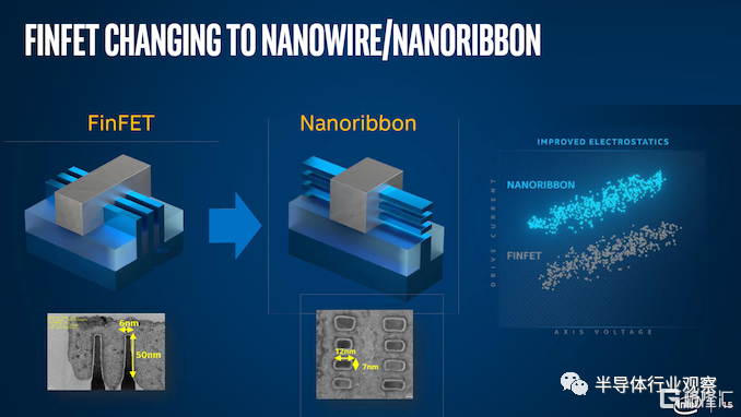 如上文所説,轉向 20A 時,英特爾的工藝名稱指的是埃而不是納米。也就是在這個時刻,英特爾將從其 FinFET 設計過渡到一種新型晶體管,稱為 Gate-All-Around 晶體管或 GAAFET。在英特爾的案例中,他們為其版本提供的營銷名稱是 RibbonFET。