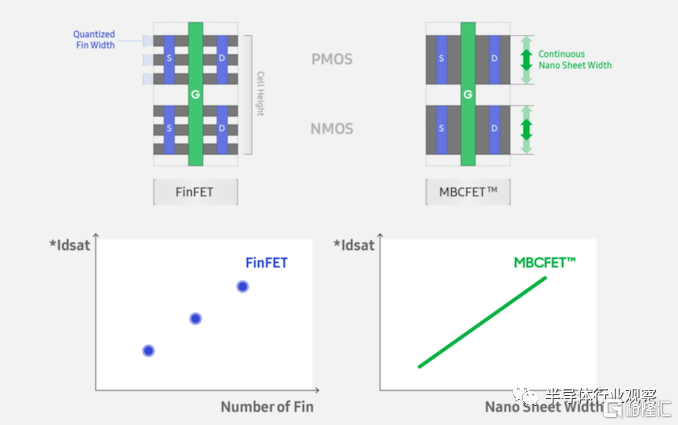 人們普遍預計,一旦標準 FinFET 失去動力,半導體制造行業將轉向 GAAFET 設計。每個領先的供應商都稱他們的實現方式不同(RibbonFET、MCBFET),但它們都使用相同的基本原理——具有多個層的靈活寬度晶體管幫助驅動晶體管電流。FinFET 依賴於源極/漏極的多個量化鰭片和多個鰭片軌跡的單元高度,而 GAAFET 支持可變長度的單個鰭片,從而允許在功率、性能或面積方面優化每個單獨單元器件的電流。