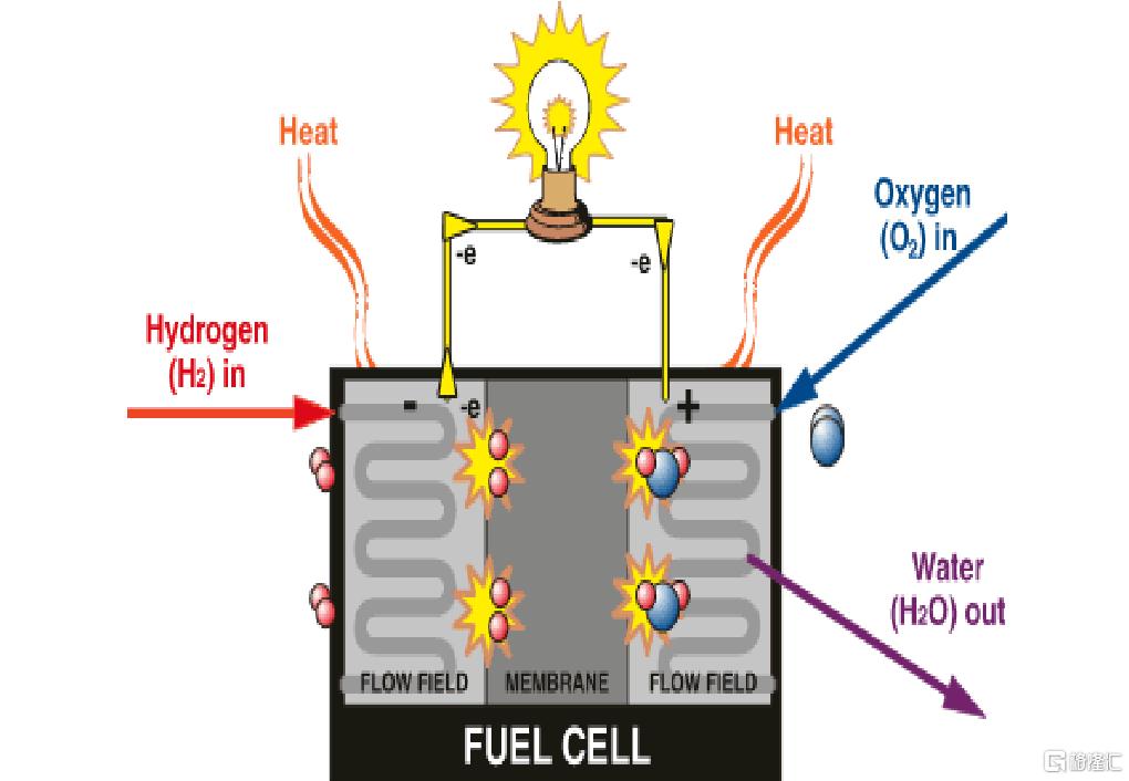 所謂氫燃料電池就是氫氣與氧氣通過電化學反應產生電能的能量轉化裝置。其放電的機理是氫氣從陽極進入,在催化劑的作用下釋放電子形成帶正電荷的氫離子,接着氫離子從陽極穿過電解質膜跑到負極與氧氣結合生產水,而電子則源源不斷的流入電路形成電流。
