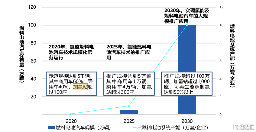 根據中國《節能與新能源汽車產業技術路線圖》規劃,到2030年我國將實現氫燃料電池車推廣累計100萬輛(注:2018年新能源汽車銷量首次達到100萬輛),投資建設加氫站超1000座,實現氫燃料電池的大規模商業應用。其實從2022年的冬奧會採用氫燃料電池這一舉措,我們同樣能看到國家要大力發展氫燃料電池的決心。