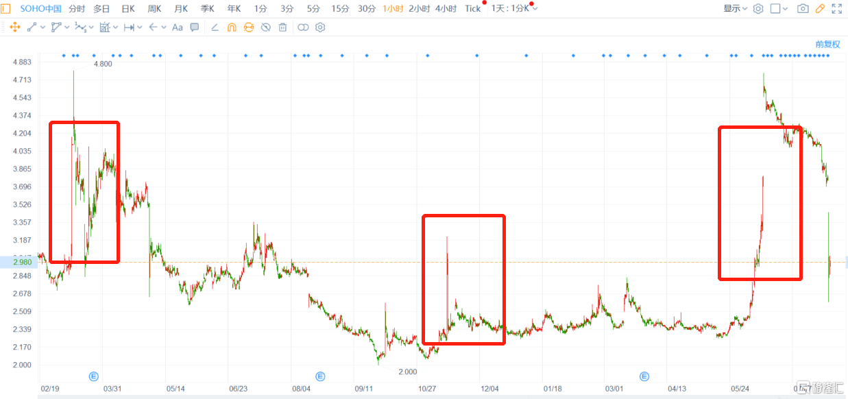 其實,SOHO中國股價的大波動主要與近期在進行的收購相關。