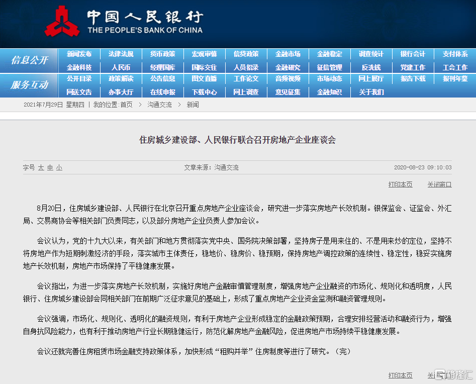 據瞭解,早在2020年8月23日央行和住建部聯合召開房地產企業座談會就已經披露了“二條輔助紅線”:
