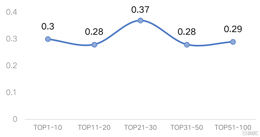 克而瑞統計,2021年1-6月百強房企在雙集中供地帶動下投資積極性雖然顯著回升,平均拿地銷售比達到0.3,但各梯隊的平均拿地銷售比仍均低於0.4。尤其31-50強、後50強的平均拿地銷售比甚至未到0.3,而拿地積極性最高的21-30強房企平均拿地銷售比僅為0.37。
