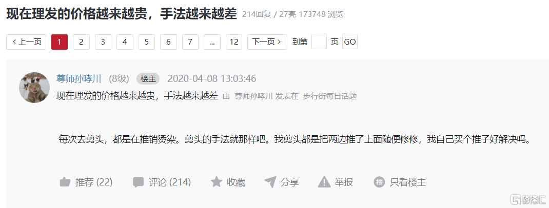 虎撲上有一個熱帖,觀點是:理髮價格越來越貴,手法越來越差。