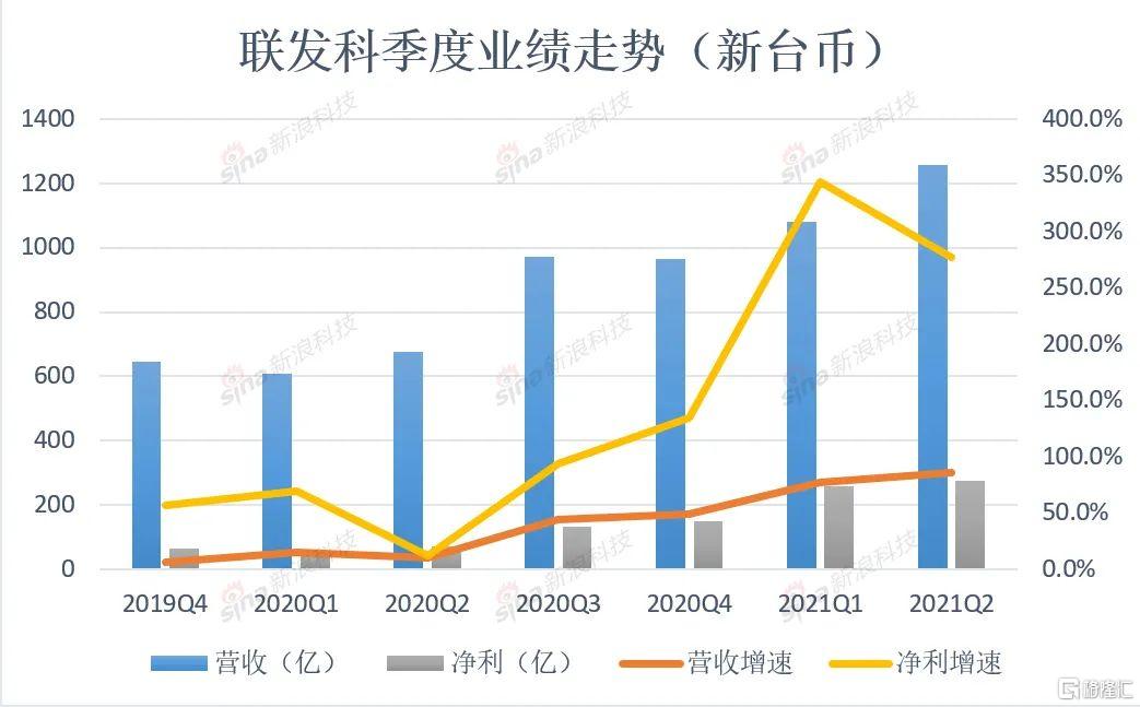 聯發科的財報顯示,自2019年開始,其財務數據便進入了增長快車道。2020年以來,其季度營收幾乎保持在兩位數的同比增長,淨利潤更是在近幾個季度實現了三位數的同比增長。
