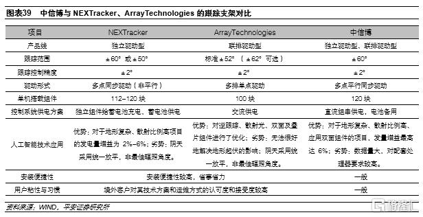 目前,中信博採用“研發設計+生產製造”的經營模式,而海外競爭對手以歐美企業為主,普遍採用“研發設計+委外生產”的經營模式;相對而言,中信博經營模式具有生產成本低、產品質量可控性高、交付能力強等優點。隨着國內外主要跟蹤支架企業技術水平的拉近,海外主要競爭對手“研發設計”的優勢不再明顯,製造方面的劣勢就會凸顯。