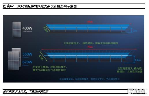 近年,組件端的技術迭代加快,其中大型化趨勢尤為明顯。組件的技術迭代會推動跟蹤支架的技術升級,例如,大尺寸組件對跟蹤支架而言意味着更重的荷載、更長的支架長度和寬度,需要跟蹤支架具有更牢固的結構以及堅固的橫截面,以支撐額外的重量並保持對抗風效應的穩定性;由於一排中裝配的組串數量變化,支架的電氣配置也會受到大尺寸組件的影響。因此,為應對組件的大型化,需要對跟蹤支架進行機械和電氣參數進行重新配置,保證最優可靠性和最佳發電量。
