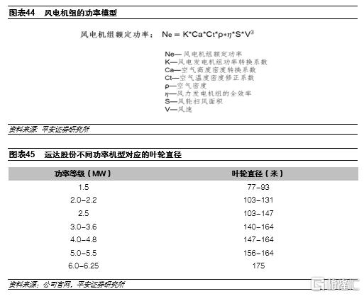 風機大型化對應的是零部件製造能力的升級。風力發電機組發電是利用葉輪接收風能,將風能轉化為機械能,再將機械能轉化為電能的過程。整體來看,葉輪吸收的風能與葉輪掃風面積成正比,與風速的立方成正比,因此,在相同的風速條件下,提升葉輪吸收的風能需要增大葉輪直徑,即對葉片的長度提出更高的需求;在風切變較高的區域,通過增加塔筒高度可以提升輪轂處的風速,從而在相同的葉片長度下可以提升葉輪吸收的風能。葉輪吸收風能增加後,通過傳動結構的匹配設計,可以提升風電機組的額定功率,從而實現風機的大型化。因此,在同樣的風資源條件下,風機的大型化往往對應的是更長的葉片以及傳動裝置(軸承、齒輪箱、發電機等)的功率大型化,也就對應核心零部件更高的製造難度。