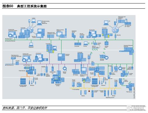 (2)自動化技術:伺服、變頻器、PLC等產品作為主流的自動化設備,是工業界向數字化轉型的基礎,例如西門子的新一代工控產品,均為將來的數字化升級做了一定的準備,包括S7-1500 PLC能夠無縫集成到TIA博途中並且具有獨立IP端口將數據上傳網絡,在電機等執行設備上加裝smart box進行數據採集及傳輸等。