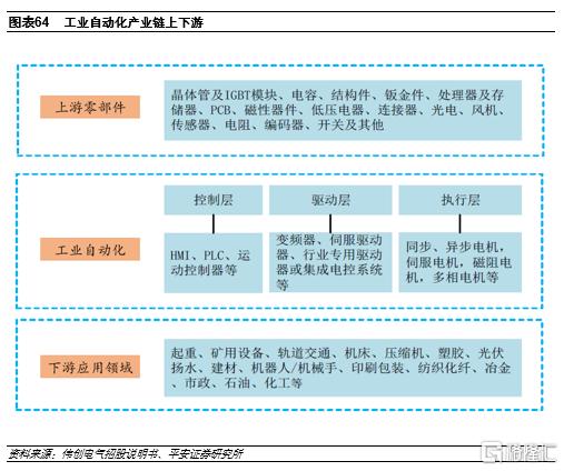 工業自動化是指在工業生產中應用各類自動控制、驅動和採集設備,實現機器替代人工進行生產製造的技術,主要產品包括變頻器、伺服系統、步進系統、HMI、PLC、傳感器及相關儀器儀表等。工業自動化控制產品作為高端裝備的重要組成部分,是發展先進製造技術和實現製造業自動化、數字化的關鍵。工業自動化產品下游應用行業廣泛,可以分為過程控制工業和離散控制行業兩大類別: