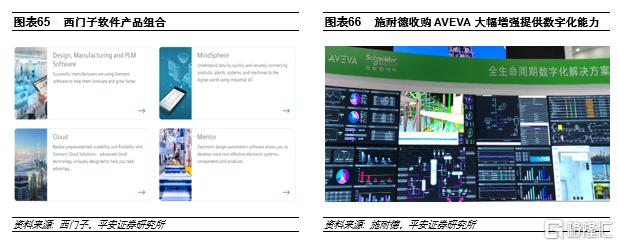 頭部自動化企業在自動化技術和行業工藝理解上均有深厚的積累,但是軟件能力一直是傳統自動化企業的相對薄弱項。在近十年,我們可以看到西門子、施耐德等龍頭企業通過外延併購,在大幅提升軟件能力,以引領工業界的數字化轉型趨勢。西門子在2007年35億美元收購了UGS,其開發的NX、Teamcenter工業軟件是西門子PLM軟件的重要組成部分,目前西門子已成為全球前三的工業軟件公司;在2016年,作為實現公司Vision 2020願景舉措的一部分,西門子收購了ALM軟件公司Polarion,該公司是業內第一個提供基於瀏覽器的應用程序生命週期管理企業解決方案的廠商,西門子通過在PLM軟件組合中加入Polarion,進一步提升了公司提供數字化解決方案的能力。施耐德在近年內收購了Invensys、AVEVA等多家知名工業軟件公司,使得公司在已有的配電和自動化技術上,研發了多款具備互聯互通功能的下一代產品,並且推出適用於工業、電力、數據中心等多個行業數字化解決方案的EcoStruxure工業物聯網平台。