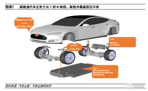 技術催動變革,量能的積累將引發質的突破。從絕對數量來看,經過數年的發展,全球新能源汽車的產銷量已突破300萬台/年,產值突破3000億元,產業規模蔚為可觀,且造就出如Tesla、寧德時代一眾的明星上市公司。然而,相比於已發展了一百多年的燃油汽車,新能源汽車技術業態的革新仍遠未停息,無論是造車新勢力、固態/燃料電池、SiC器件、大功率/無線充電等都尚處於起步階段,新技術的萌生到茁壯將一次次顛覆產業格局,新的賽道即意味着新的可能。