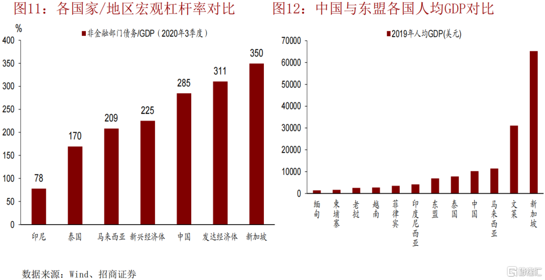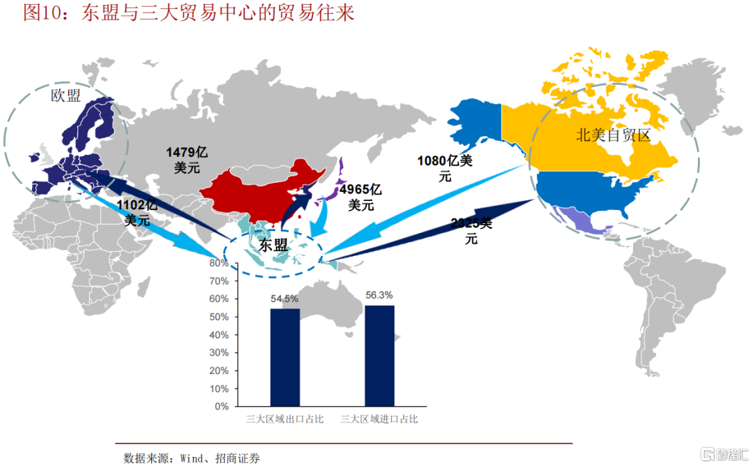 東盟已是三大世界工場的貿易夥伴,人力資源豐富,宏觀槓桿率 低,“得東盟者”將在未來全球競爭中佔據優勢地位。
