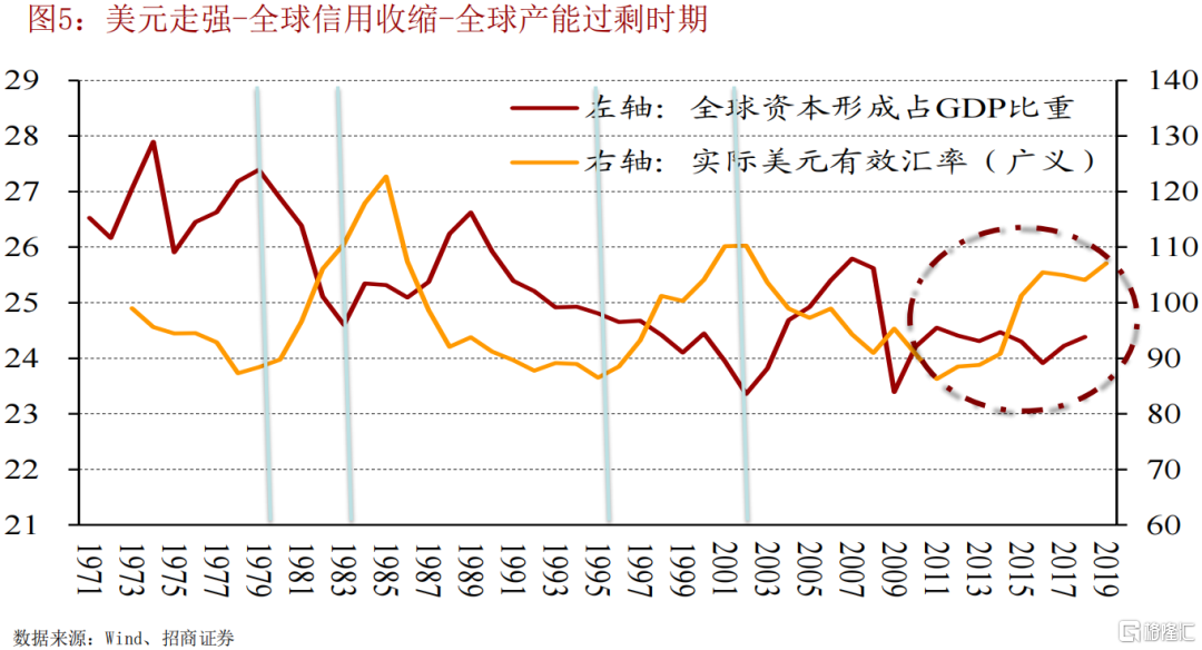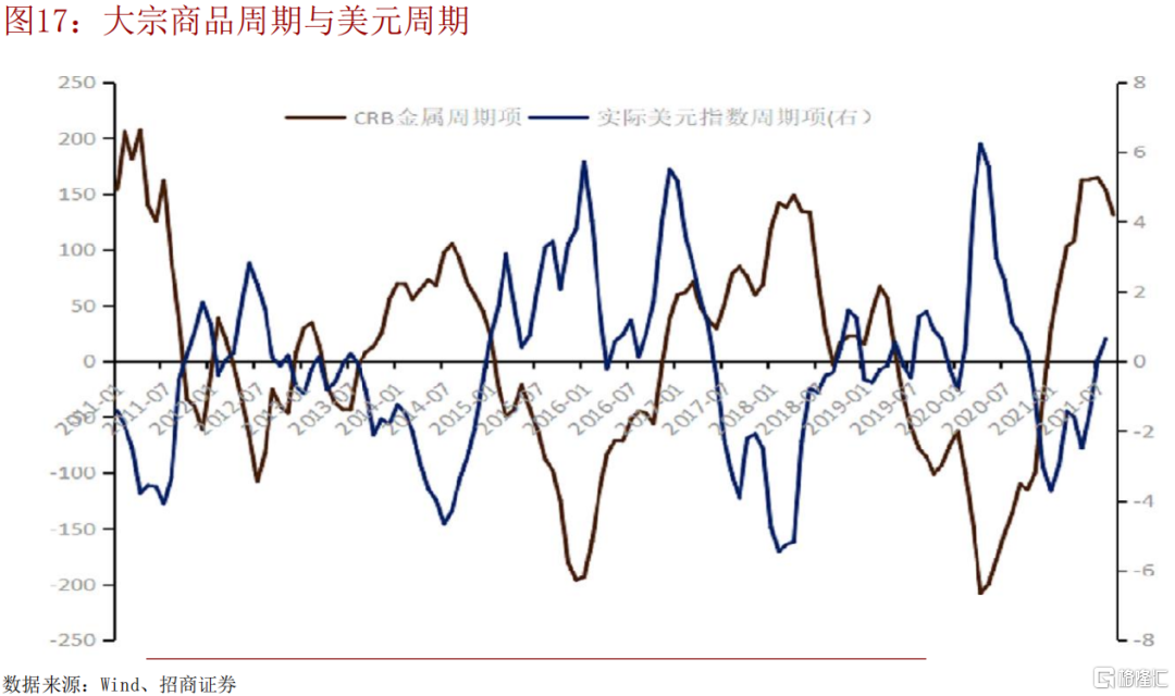 全球金融週期擴張(02年-11年),美元指數回落,大宗商品牛市;全球金融週期收縮(11年-19年),美元指數走強,大宗商品熊市。