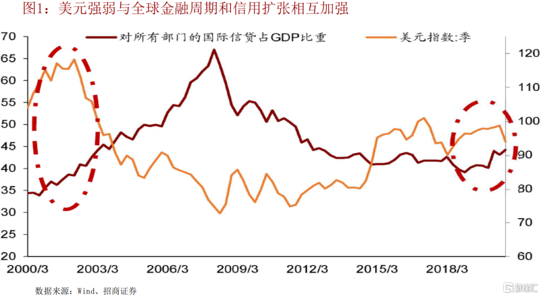 全球金融週期:2019下半年開始啓動擴張階段,將持續數年。驗證指標:數量指標,國際信貸/GDP向上;價格指標, 美元指數向下。